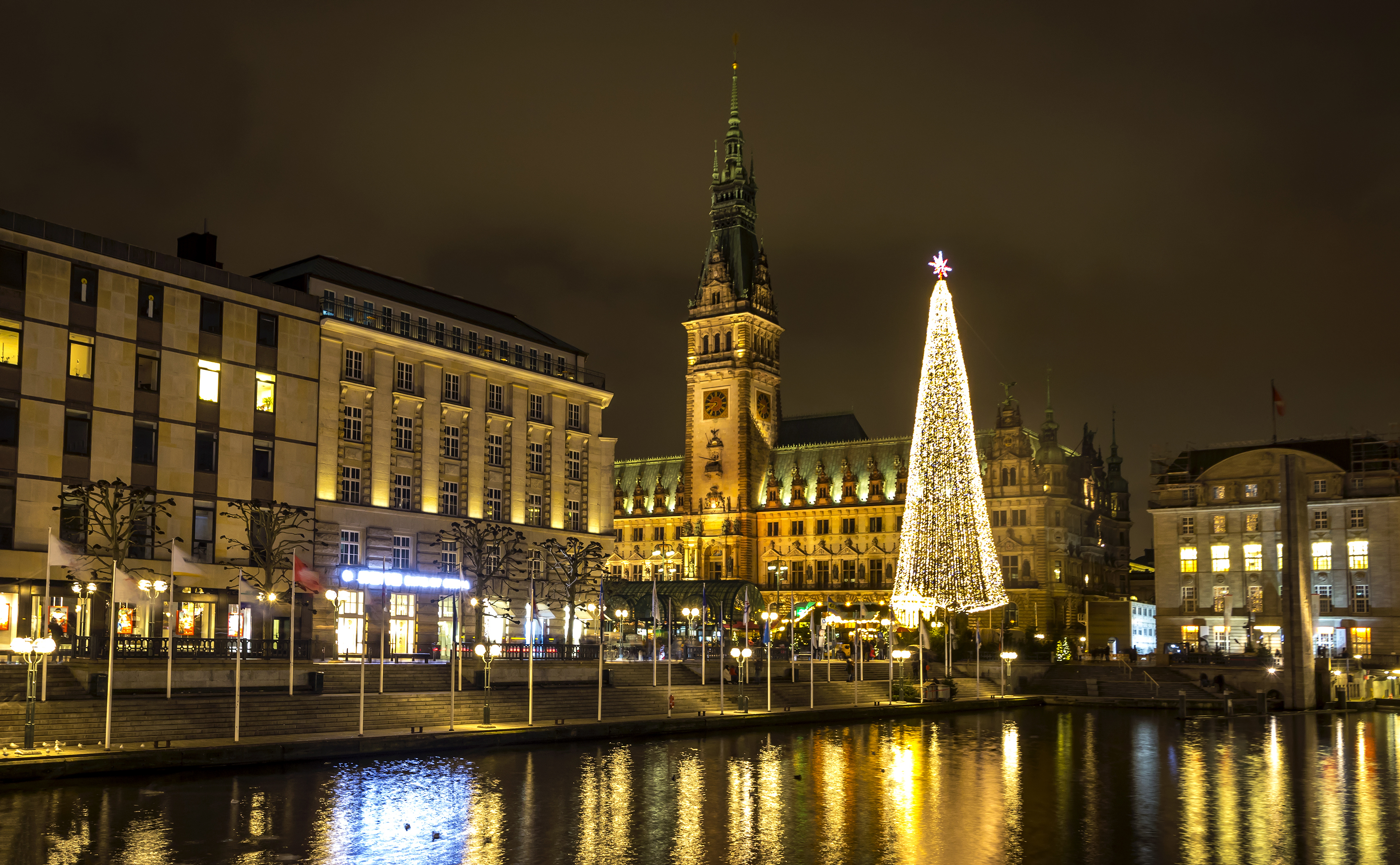 Der beliebteste Weihnachtsmarkt der Stadt findet genau gegenüber dem Hamburger Rathaus statt. Zwischen den unzähligen Buden für Kunsthandwerk und Speis und Trank duftet es nach traditionsreichen Süßwaren und Glühweingewürzen. Als Überraschung für die Besucher fliegt der Weihnachtsmann auf seinem Schlitten dreimal am Tag über den Markt. Naschkatzen sollten sich keinesfalls die Spezialitätengasse entgehen lassen und unbedingt Walnüsse, Lebkuchen oder gebrannte Mandeln probieren. Und die Spielzeuggasse ist ein Muss für die Kleinen, die sich ganz sicher in die große Modelleisenbahn verlieben werden, die über die Buden fährt.