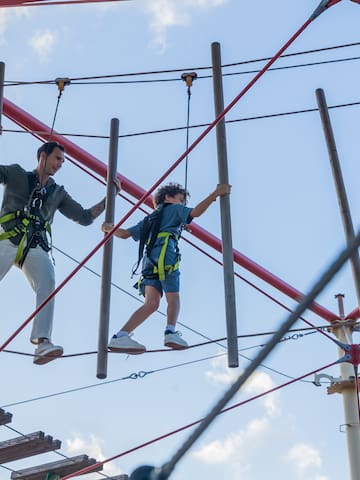 An elevated course with a playful vibe. Climb, balance, and conquer challenges in an adventure full of excitement and good times.