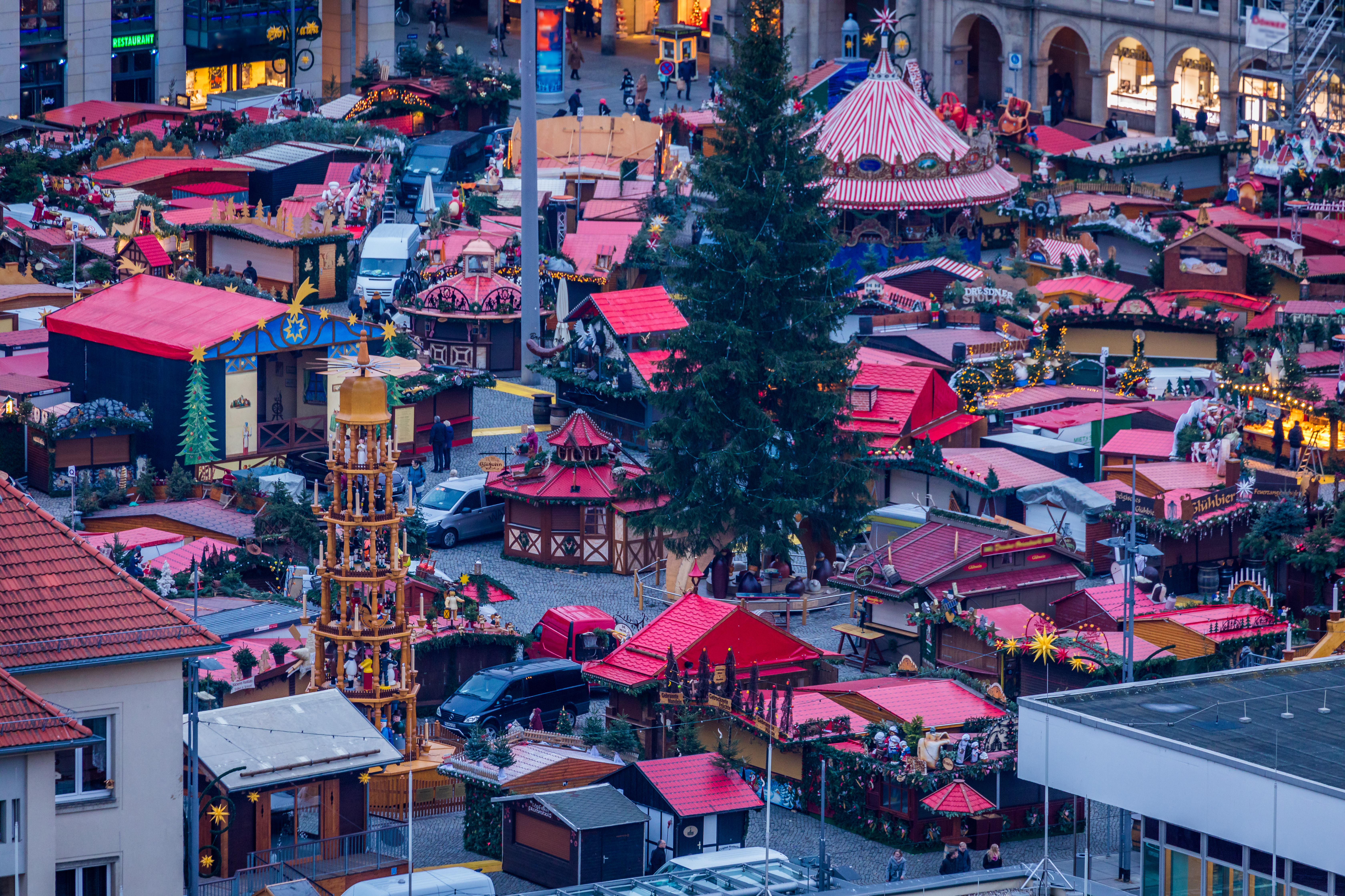 El primer Striezelmarkt tuvo lugar en 1434. No te pierdas la mayor pirámide navideña del Erzgebirge, de 14,61 metros de altura, y el mayor arco de velas del mundo, así como un programa cultural navideño a diario. Situado en el Altmarkt, las casetas ofrecen arte tradicional de Erzgebirge y pequeños regalos. Las delicias culinarias incluyen bratwurst, vino caliente o cerveza caliente y patatas de ciruela.